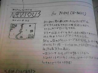 いつ終わるとも知れないコードの山を、コツコツと積み上げていく。 「PC−8001でゼビウス(もどき)を実現したい!」 その一心で。 実際、いつ破綻するかもわからない、実現可能性もよくわからない企画であったが、 「もしできたら・・・」それはとてつもなく嬉しいであろう。それを夢見て、 ただひたすらコーディングしていた(当時もやはり紙に書いていた。)